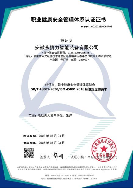 Occupational Health and Safety Management System Certification Certificate