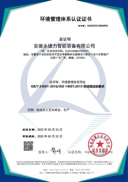 环境管理体系认证证书 Environmental Management System Certification